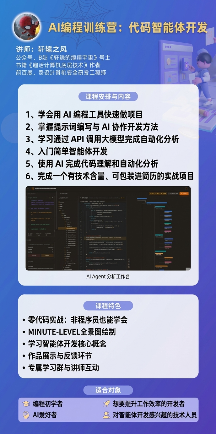 制作《从零开始学逆向》课程,帮助大量学员系统入门二进制逆向分析。