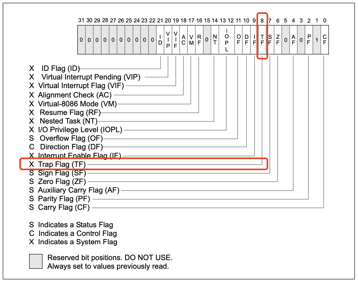 原来x86架构CPU有一个标志寄存器,名叫eflags,它里面不止包含了程序运行的一些状态,还有一些工作模式的设定。
