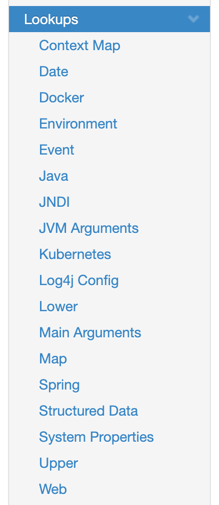 log4j2的强大之处在于,除了可以输出程序中的变量,它还提供了一个叫Lookup的东西,可以用来输出更多内容: