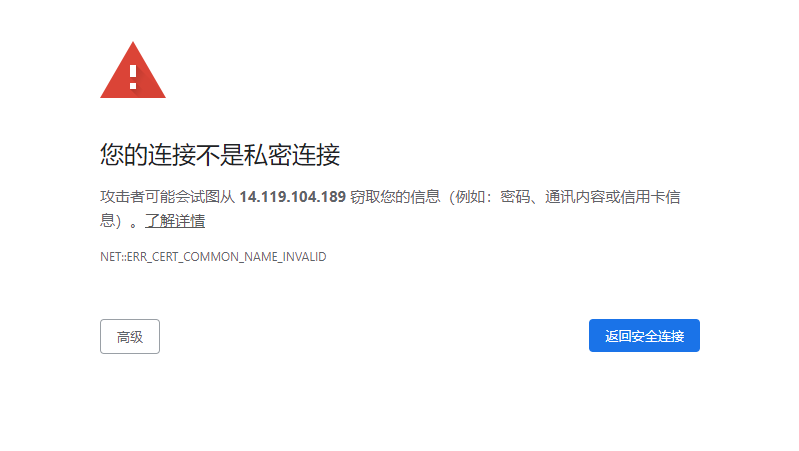 当我用HTTPS直接访问https://14.119.104.189的时候,浏览器给了我这样一个提示: