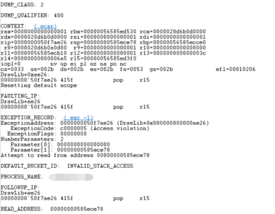 没有头绪,找风哥帮忙。在风哥建议下又分析了一次。先找出之前的程序崩溃转储,用windbg再看看有没有什么蛛丝马迹。