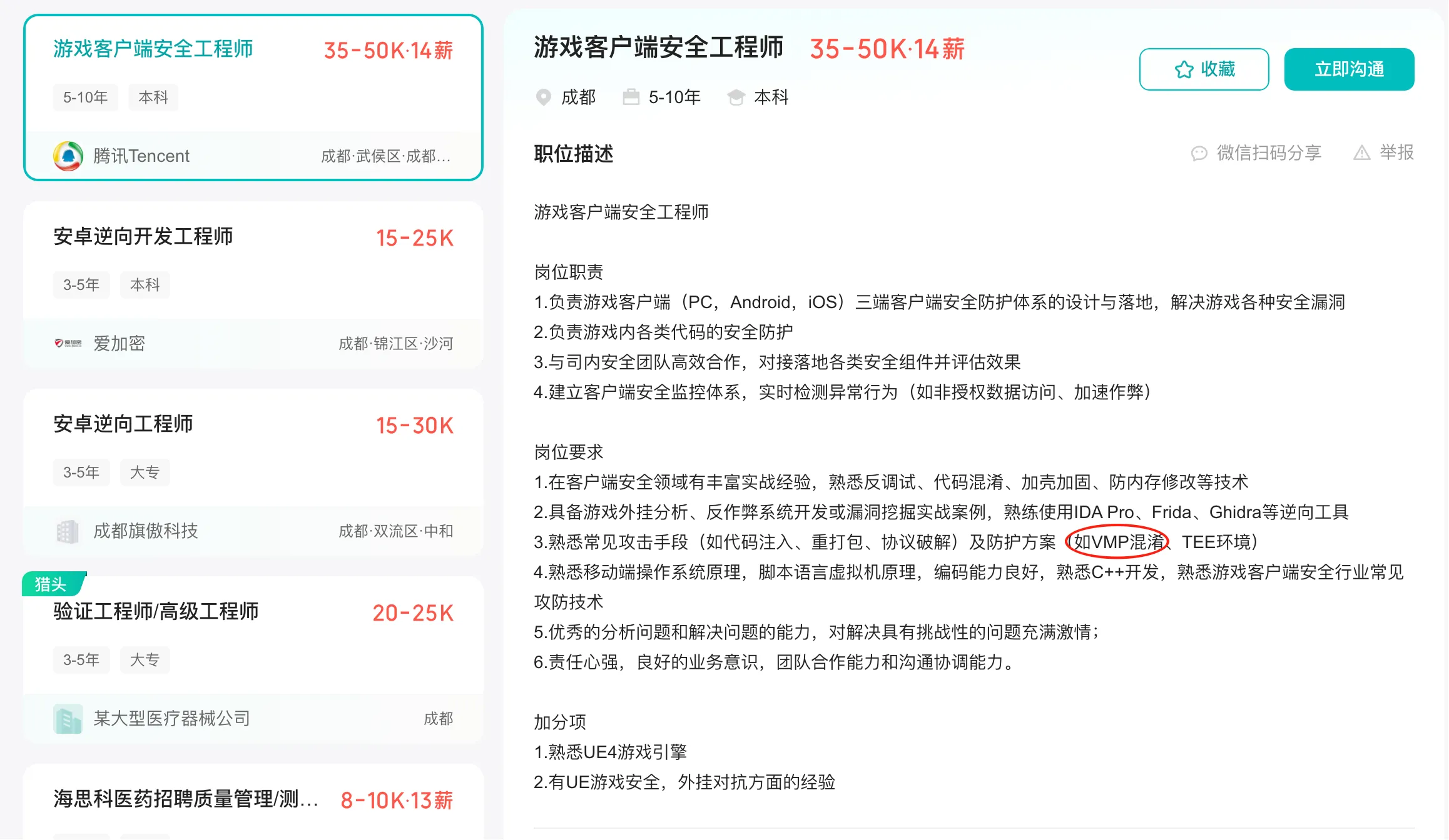 下面是BOSS招聘上一些安全岗位对VMP的要求: