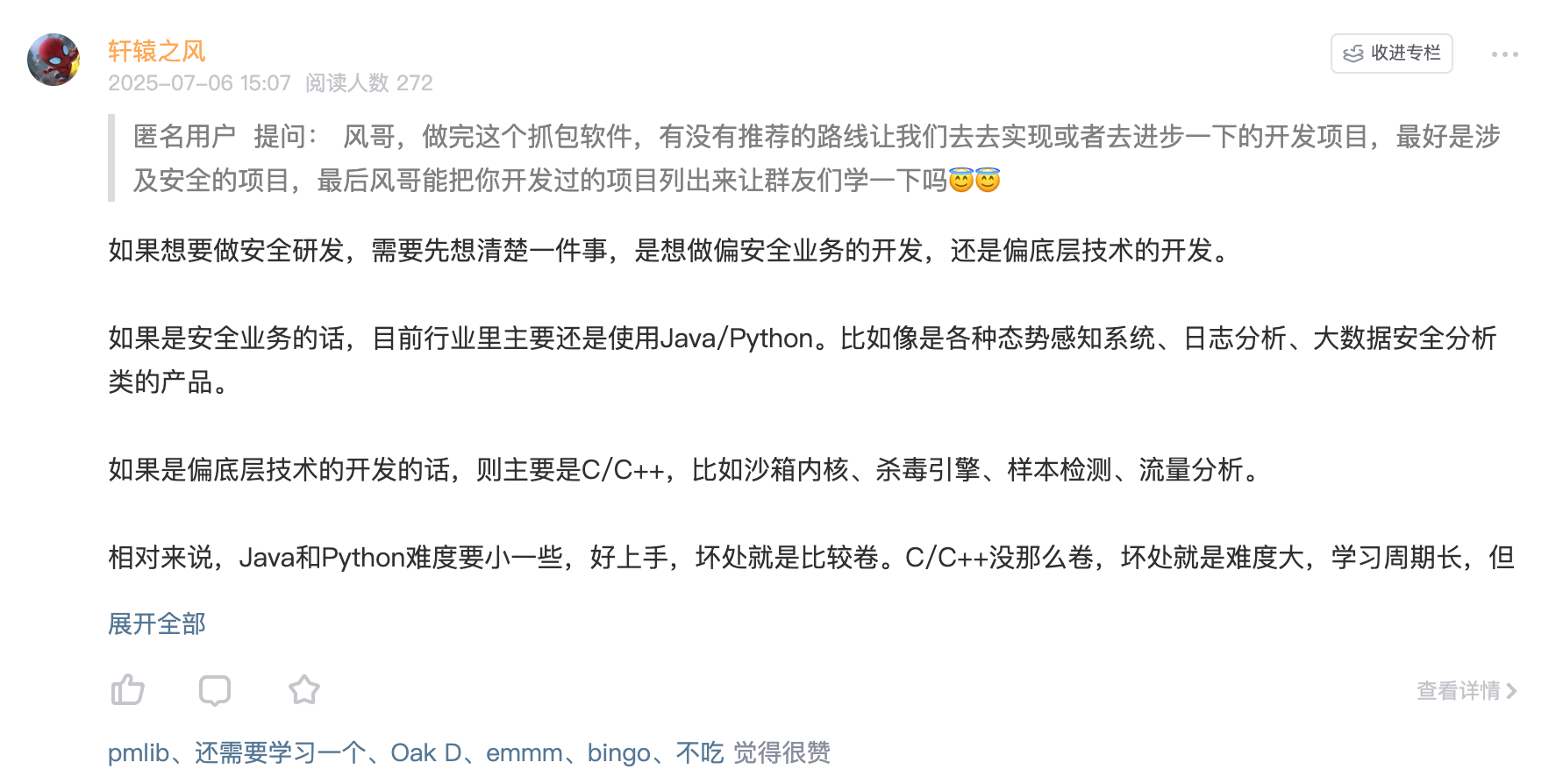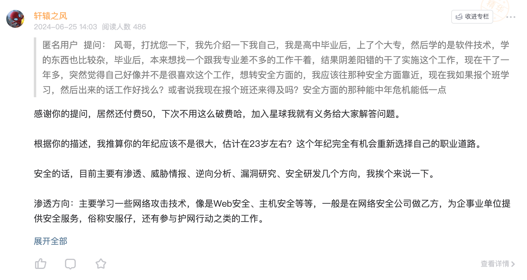 除了课程,星球里还有大量的技术、职场的答疑帖: