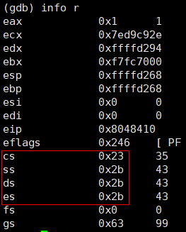 在中断的上下文中看一下,程序在执行时,段寄存器里面到底装了啥?