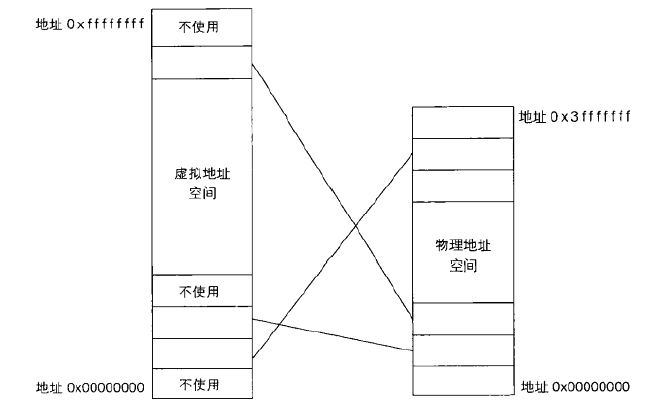 操作系统将内存空间按照“页”为单位划分了很多页面,这个页的大小默认是4KB(当然可以改的),各进程拥有虚拟的完整的地址空间,进程中使用到的页面会映射到真实的物理内存上,程序中使用的地址是虚拟地址,CPU在运行时自动将其翻译成真实的物理地址。