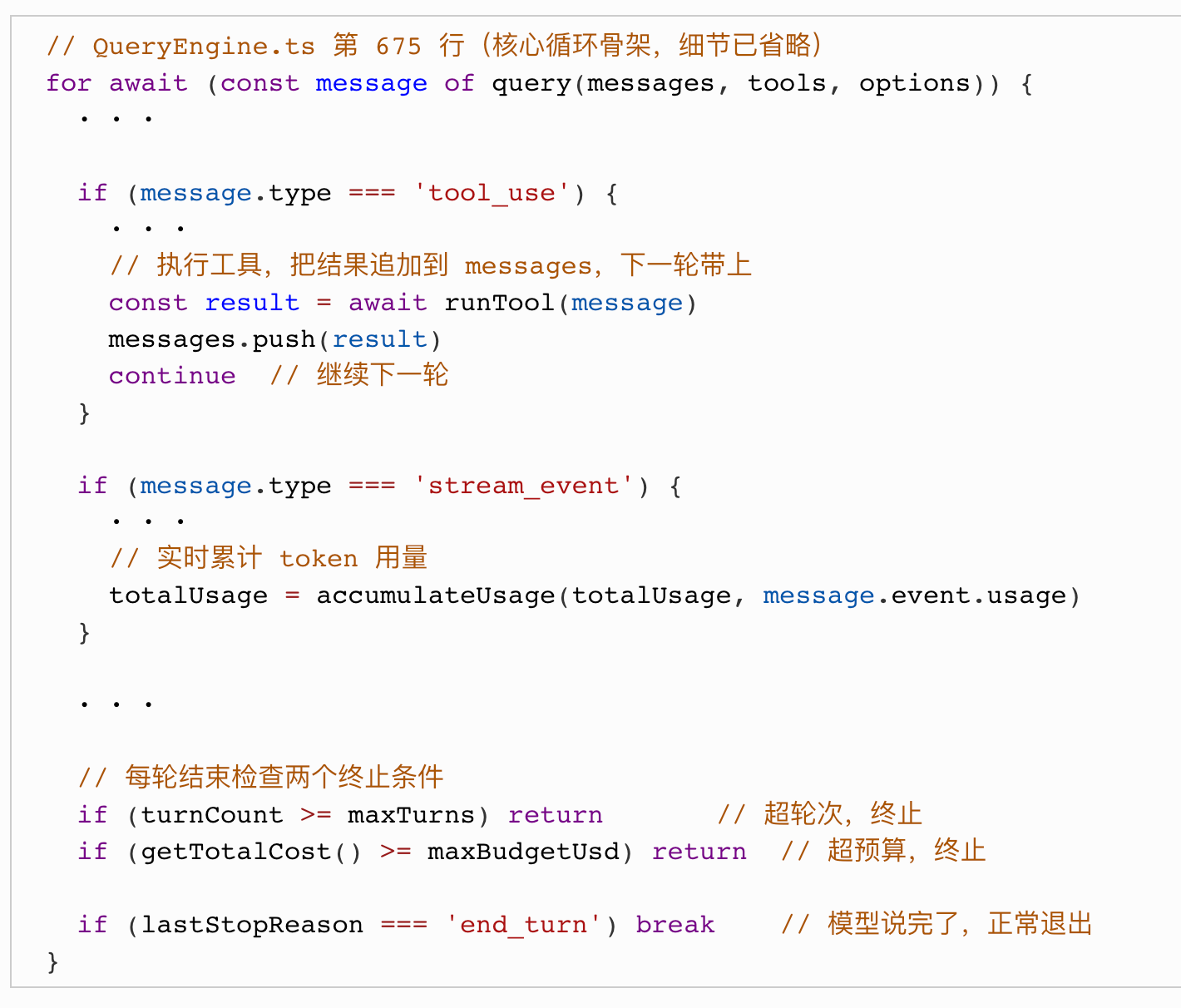 来看源码里核心循环的骨架,我把细节省掉,只留最关键的结构: