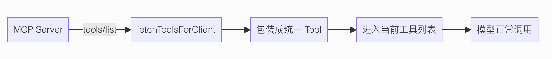 比如 tools/list 拉回来的每个 MCP 工具,都会被包装成统一的 Tool 对象。