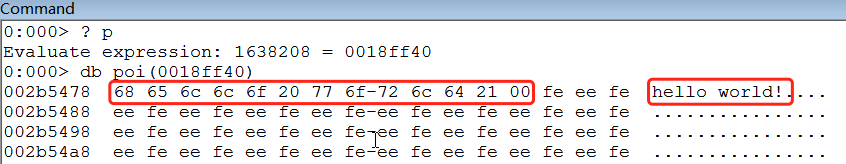 运气好的话,字符串能够成功复制,也能成功打印出"hello world"字符串,比如我在VS2008下,用Debug模式运行: