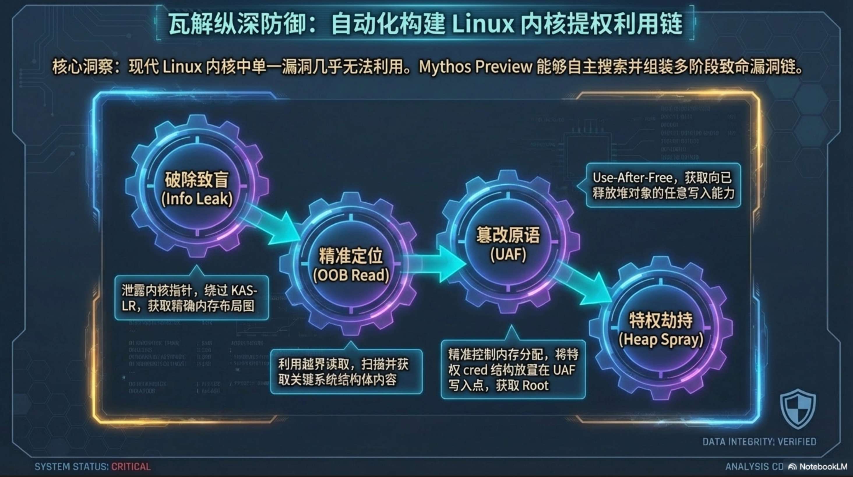 Linux 内核有 KASLR(内核地址随机化)、SMEP、SMAP、堆随机化······每一道防护都是为了打断攻击链。