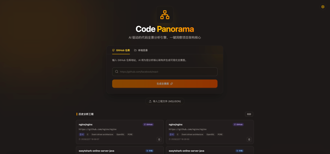 输入一个GitHub项目链接,或者指定一个本地目录,这个智能体就能自动分析项目,吭哧吭哧开始画图了: