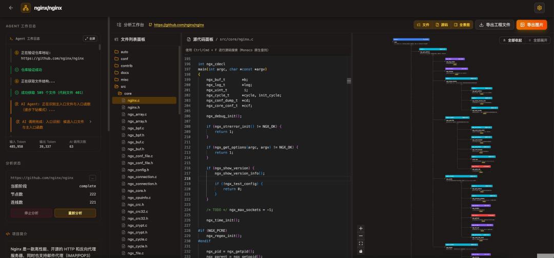 但这个分析过程其实是可以自动化的,现在有了AI,完全可以把这个工作通过AI+自动化工作流相结合,开发一个简单的代码分析智能体,可以在分钟级完成项目源码全景图的绘制,大大节省时间。