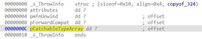 它的类型是:_s__ThrowInfo结构体,这个结构体定义是这样的:
