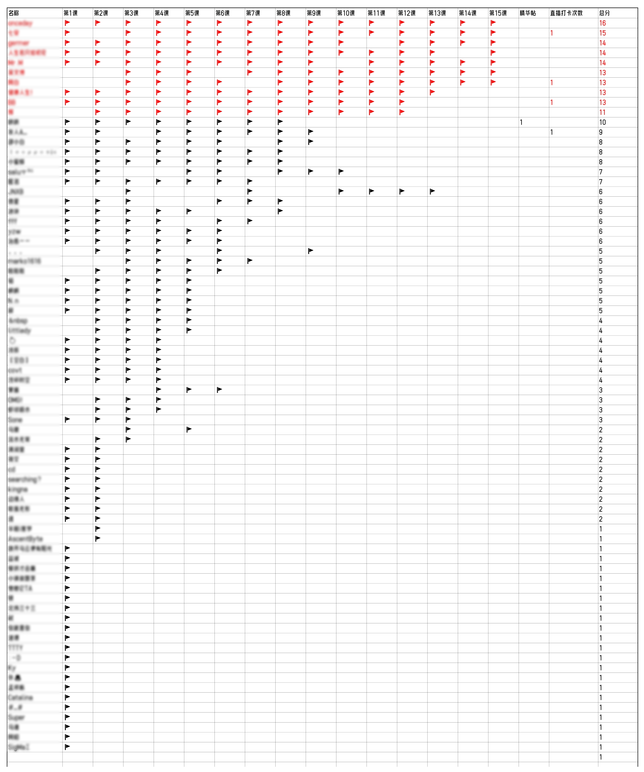 下面是为了鼓励大家积极打卡学习提交作业推出的学习积分榜,有一群人正在一起努力学习:
