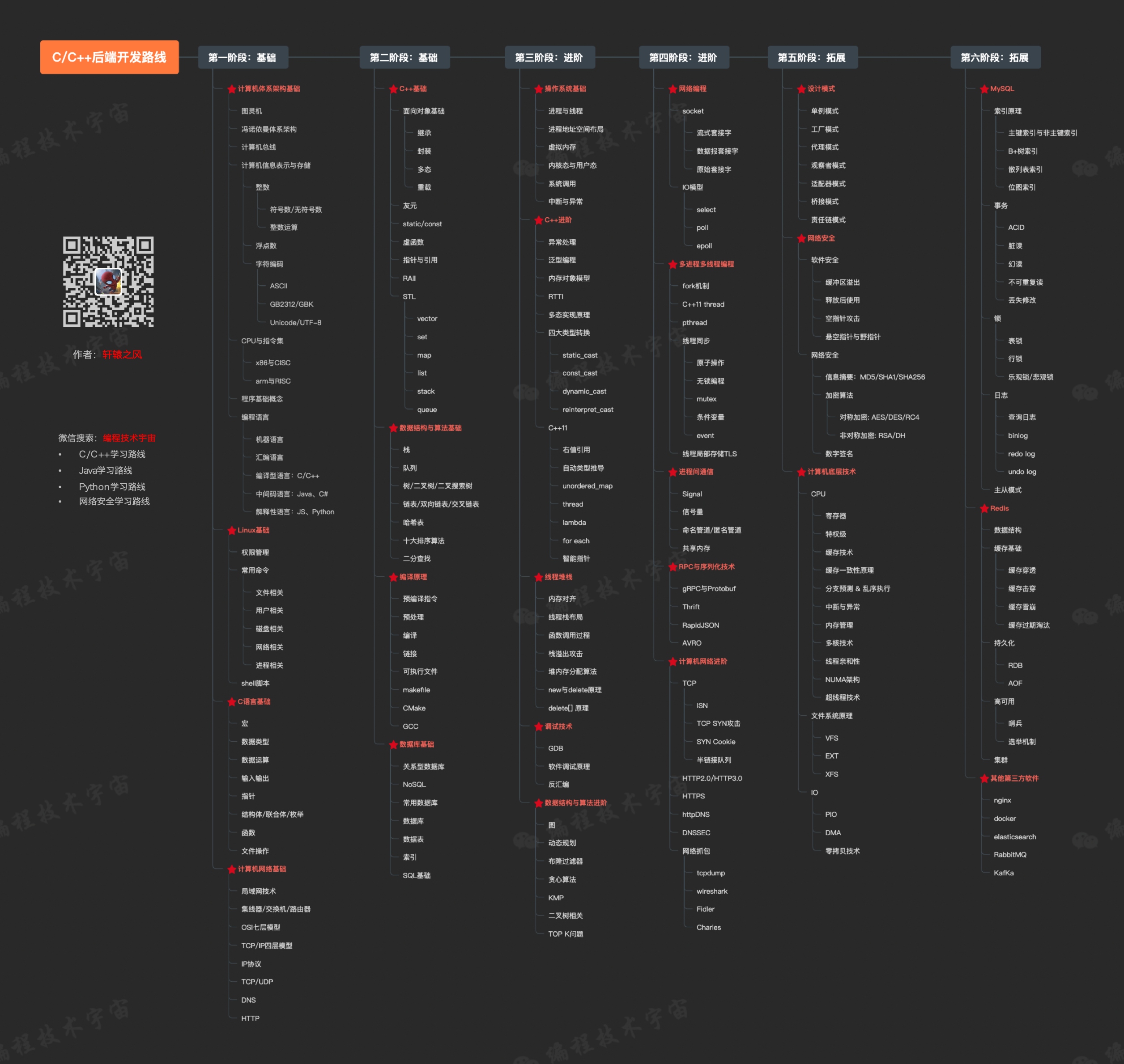 以上就是做C/C++后端开发,从新手入门到工作所需要学习的内容整理了,可能并不全面,但掌握以上这些内容足以胜任大部分的岗位要求了。