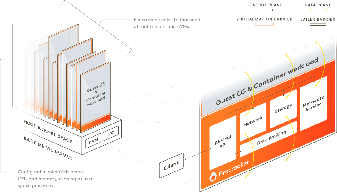 近年来,一种超轻虚拟化的思想开始流行开来,亚马逊推出的firecracker就是一个典型的代表。